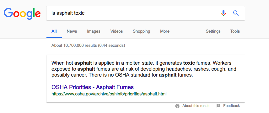 Pot holes are usually formed by asphalt pavement. When I’ve told people this idea, most people were like, “that’s probably toxic.” It does seem quite toxic so I did a quick google search: